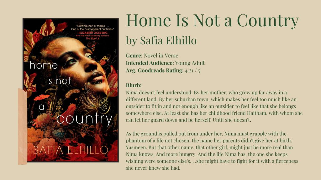 As a novel-in-verse, I’m assuming I added Home is Not a Country as it was most likely compared to Elizabeth Acevedo’s work (The Poet X was a five-star read for me when I picked it up years ago). Because of that and because the blurb still piques my interest, I’ll be keeping this on my shelf.