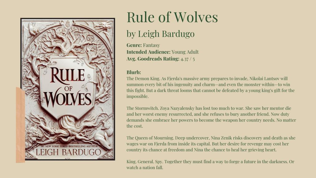 While I still haven’t picked up King of Scars (a book that is on my physical TBR), I do think I’ll probably get to Rule of Wolves at some point. I’m a sucker for the Grishaverse, what can I say? I’ll be keeping this one on my “to-read” shelf until I probably add it to my physical TBR.