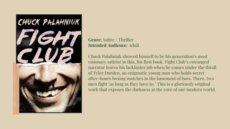 I’ve been thinking a lot about darker, thematically heavy films that came out around the turn of the century and the books published earlier in the nineties that they’re based on, hence my picking up Fight Club and Girl, Interrupted (as well as The Virgin Suicides a few months back now). So far, I’m really enjoying these picks, even though they differ pretty vastly from the TBR I’ve kept trying to establish for myself…