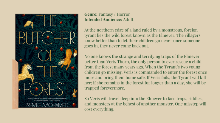 Keeping on track with shorter books, The Butcher of the Forest did differ in that it’s a recent fantasy novella. I’ve found myself reading a few more fairy tale-esque stories lately (such as Thornhedge by T. Kingfisher), and I quite liked this one! It follows a perilous journey through a dangerous, hungry forest, and it’s packed with vivid, unsettling imagery which I loved. I hoped it would’ve submitted a little bit more to the cruelty and tragedy but it is a fantasy before a horror story, and that’s okay! I still really enjoyed it and would recommend to readers seeking a fairy tale-type story.